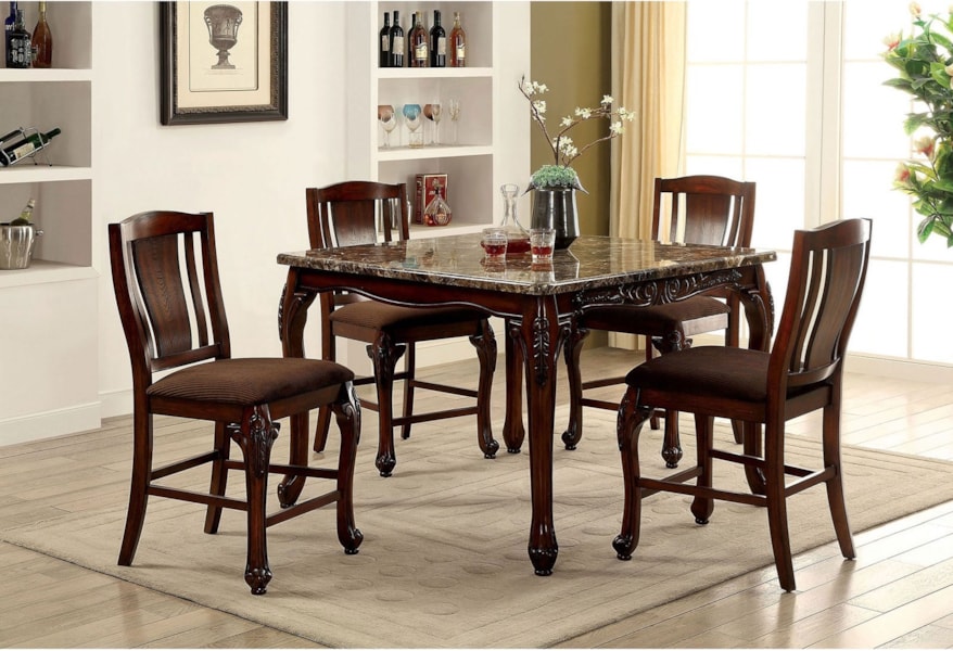 Johannesburg Traditional Square Counter Height Table With Faux Marble Top Household Furniture Pub Tables